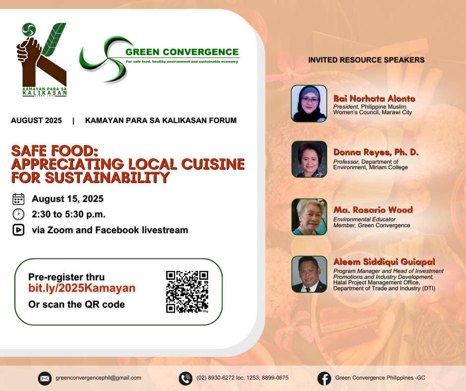 The State of Nature Assessment is an annual review of the developments in the Philippine environmental scene. Also known as the Green SONA (GSONA), it is organized by Green Convergence for Safe Food, Healthy Environment, and Sustainable Economy, or simply Green Convergence (GC). The holding of GSONA started in 2006, and was held for the first few years at Miriam College’s Environmental Studies Institute. Later, the Board of Trustees of GC decided to hold it alternately in the country’s main islands of Luzon, Visayas, and Mindanao. Its goal is to gather information, analyze the various compounding factors that contribute to the environmental problems, increase awareness of these issues, and surface solutions that are holistic and ecologically sound. GSONA has become a well-sought event for environmentalists from the academe, civil society, people’s organizations, and the private sector for its in-depth and comprehensive discourses on the causes, effects, and solutions to the pressing environmental issues.